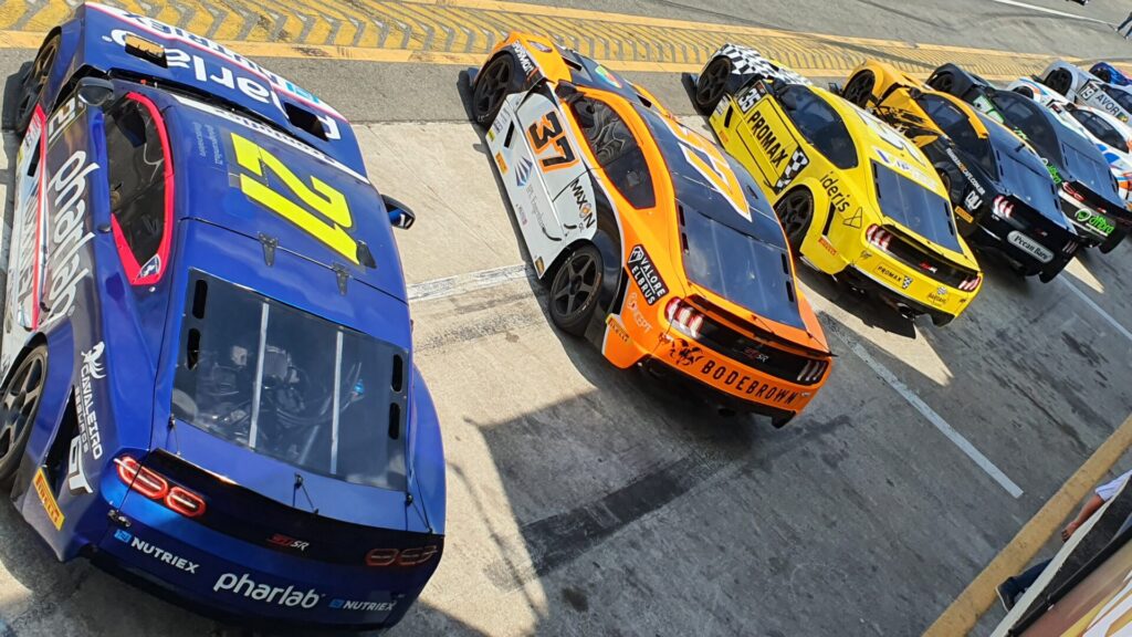 Carros da Sprint Race perfilados nos boxes. A categoria marcou o encerramento de competições automobilísticas no AIC. Crédito: Renyere Trovao.