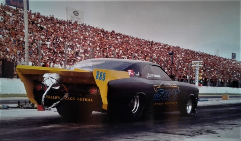 Na época, usava a mecânica original, pouco preparada e com injeção de nitro, que atingia 300 HP de potência. Depois veio o turbocharger, com injeção de nitro, até chegar ao V8 Big Block Top Fuel, que atinge cerca de 3.500 cavalos e 400 km/h.“