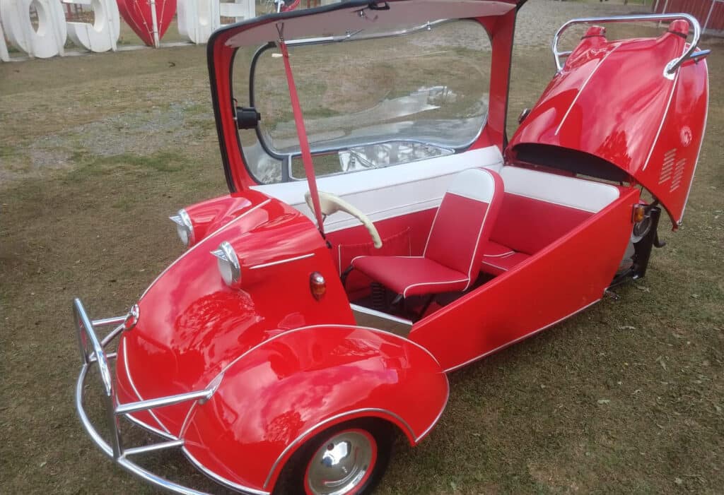 Tem anos que conseguimos restaurar de cinco a seis carros. É tudo bem artesanal. Garimpamos peças de carros bem antigos, da década de 1950, por exemplo, como um Messerschmitt 1955, em que estou trabalhando atualmente. Também tem um Porsche de 1966, uma Honda 600, ano 1974, um Datsun motor Nissan 1981e um Cadillac da década de 1980.